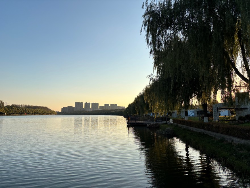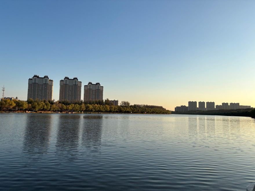 朝伊通河望去,万里无云的蓝天显得格外明净,再加上略带凉意的清风,让人格外有精神。
