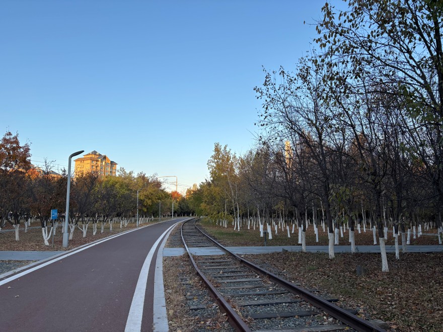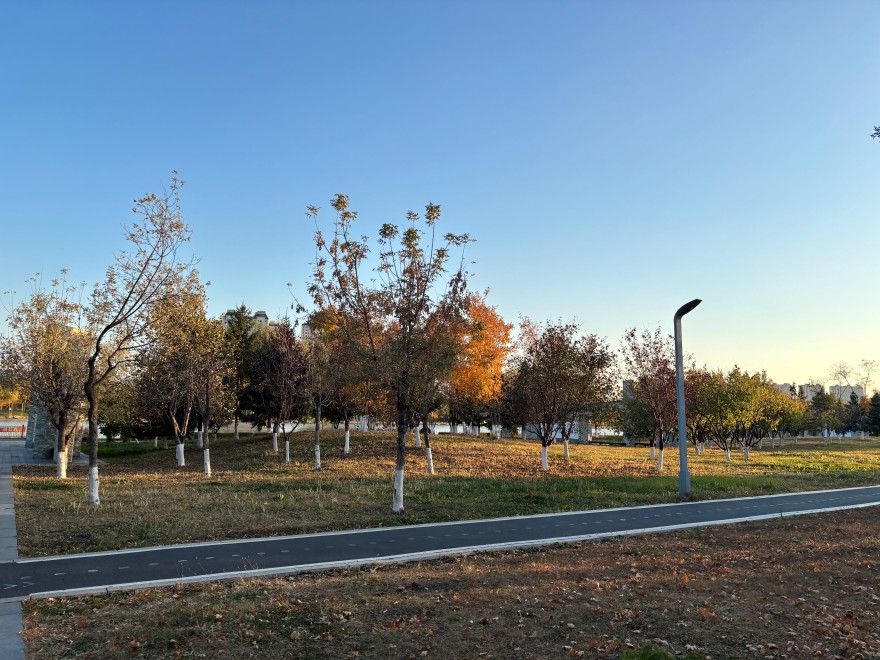 在东北,令南方人惊奇的不仅仅是雪景,还包括独属于北国的柔美秋光。2025年10月21日下午四点钟左右,笔者来到长春伊通河轨迹公园欣赏秋色。从轨道三号线伊通河站下车,往伊通河方向走,可到达长春工业轨迹公园。