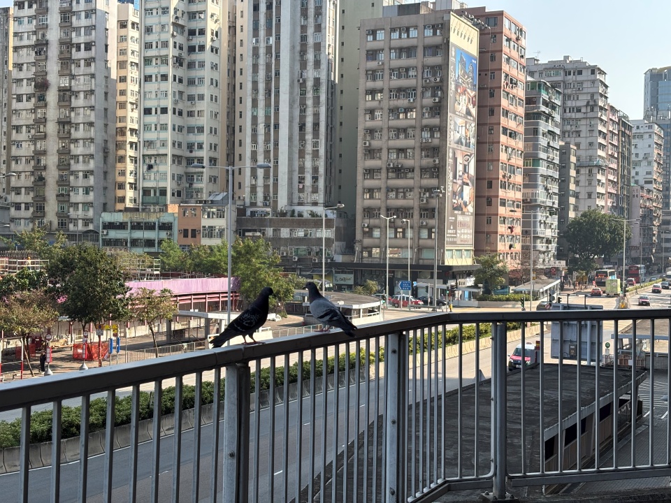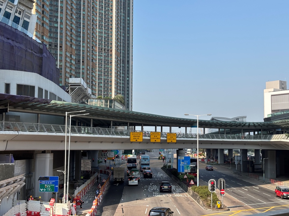 笔者当时住在土瓜湾附近,乘坐港铁屯马线到达柯士甸站下车,步行一段距离后到达西九文化区,路上可见香港九龙城区的街道与车水马龙。