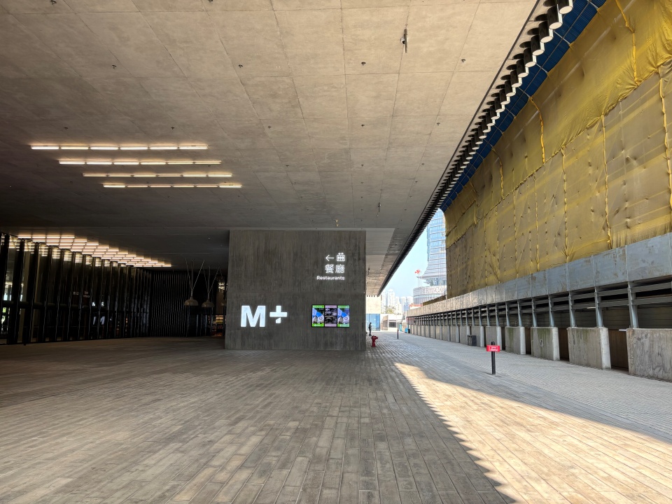 到达西九文化区后,可见M+博物馆。M+博物馆是亚洲首家全球当代视觉文化博物馆,汇聚了当代视觉文化、设计和建筑,以及流动影像等。