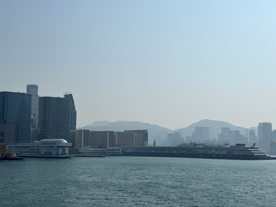 到达香港故宫文化博物馆附近,该博物馆具有中国传统建筑特色,屹立在西九龙海岸边。
