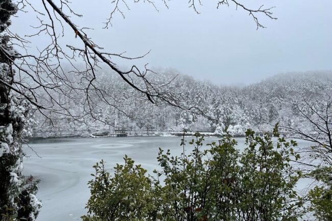 庐山是江南赏雪的地点之一。在下雪天,山林披上一层白色银装,白雪覆盖在庐山山上牯岭镇的欧式建筑上,有一种欧洲雪景的韵味。